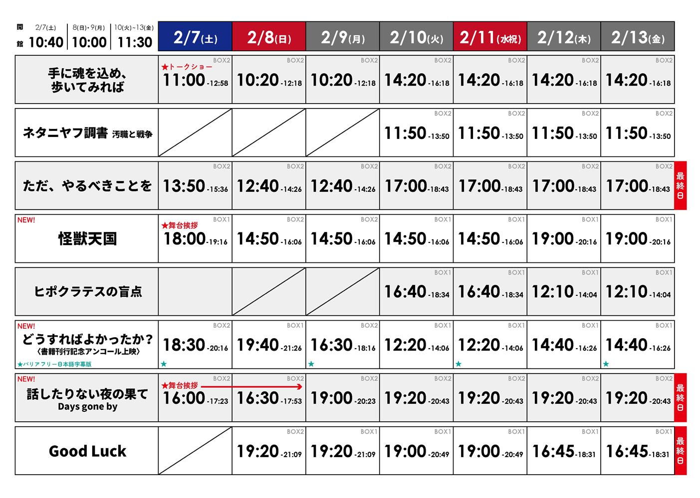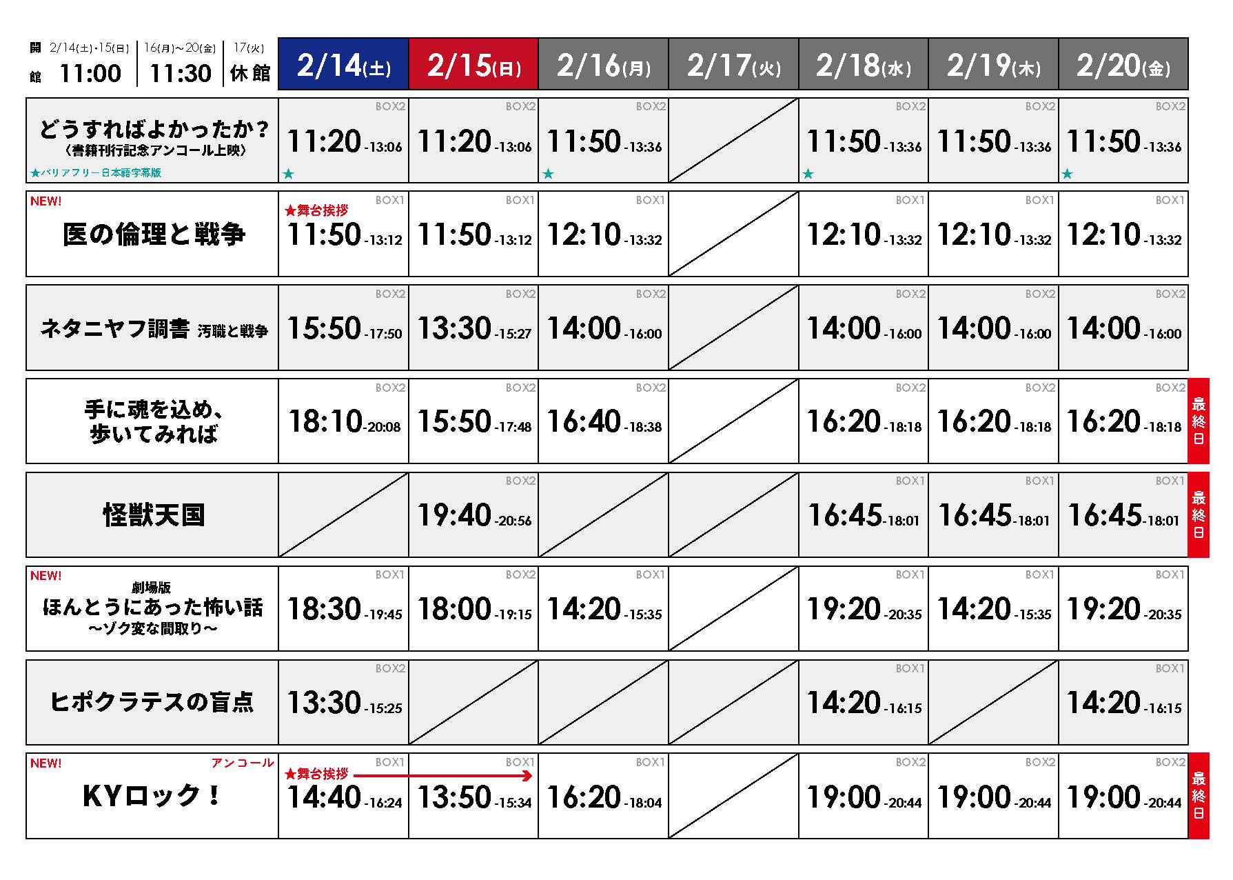 ★2/7(土)~2/13(金)の上映スケジュール表はこちら