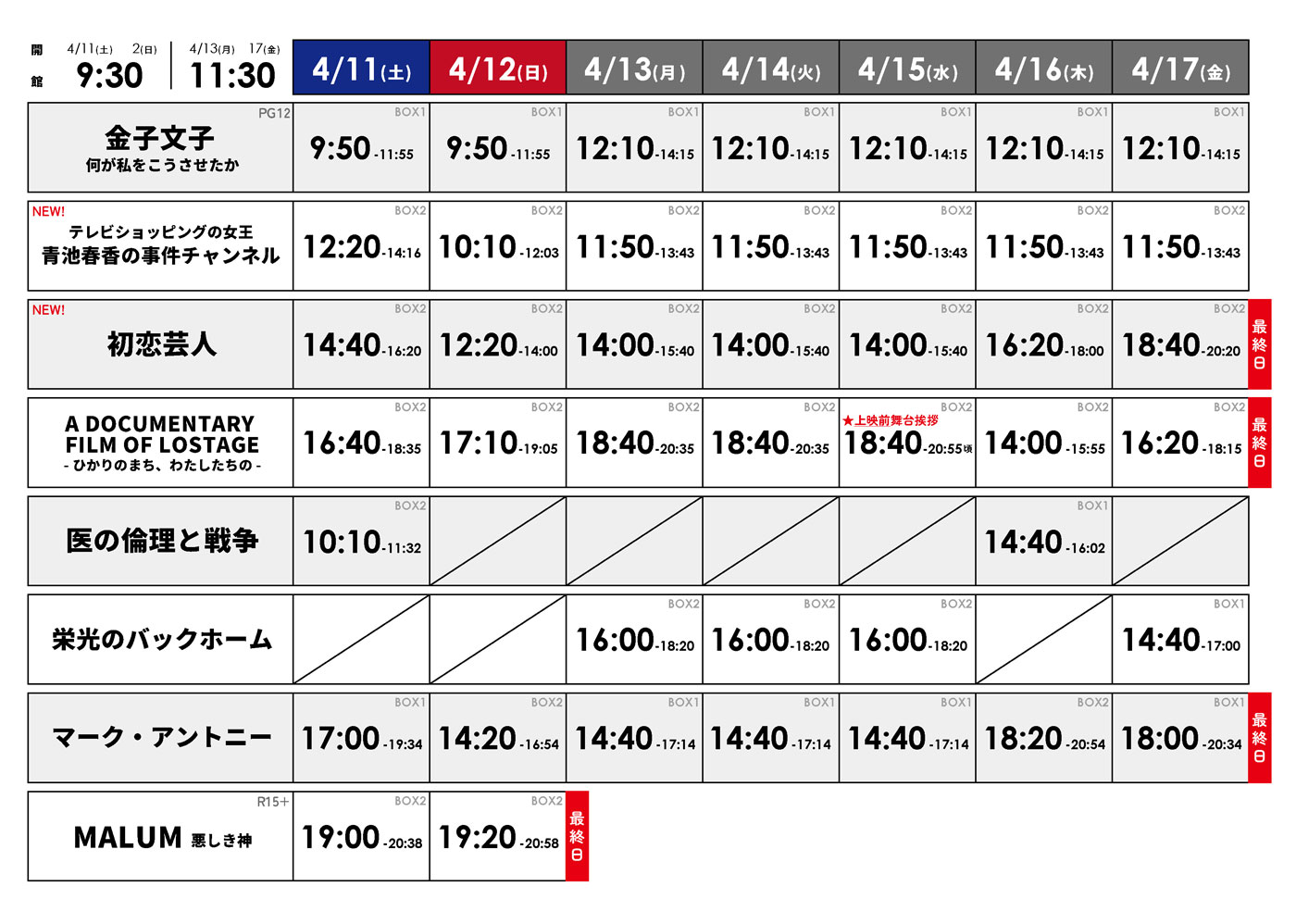 ★4/11(土)~4/17(金)の上映スケジュール表はこちら