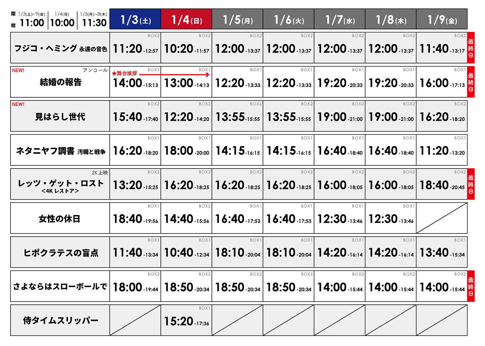 ★1/3(土)~1/9(金)の上映スケジュール表はこちら
