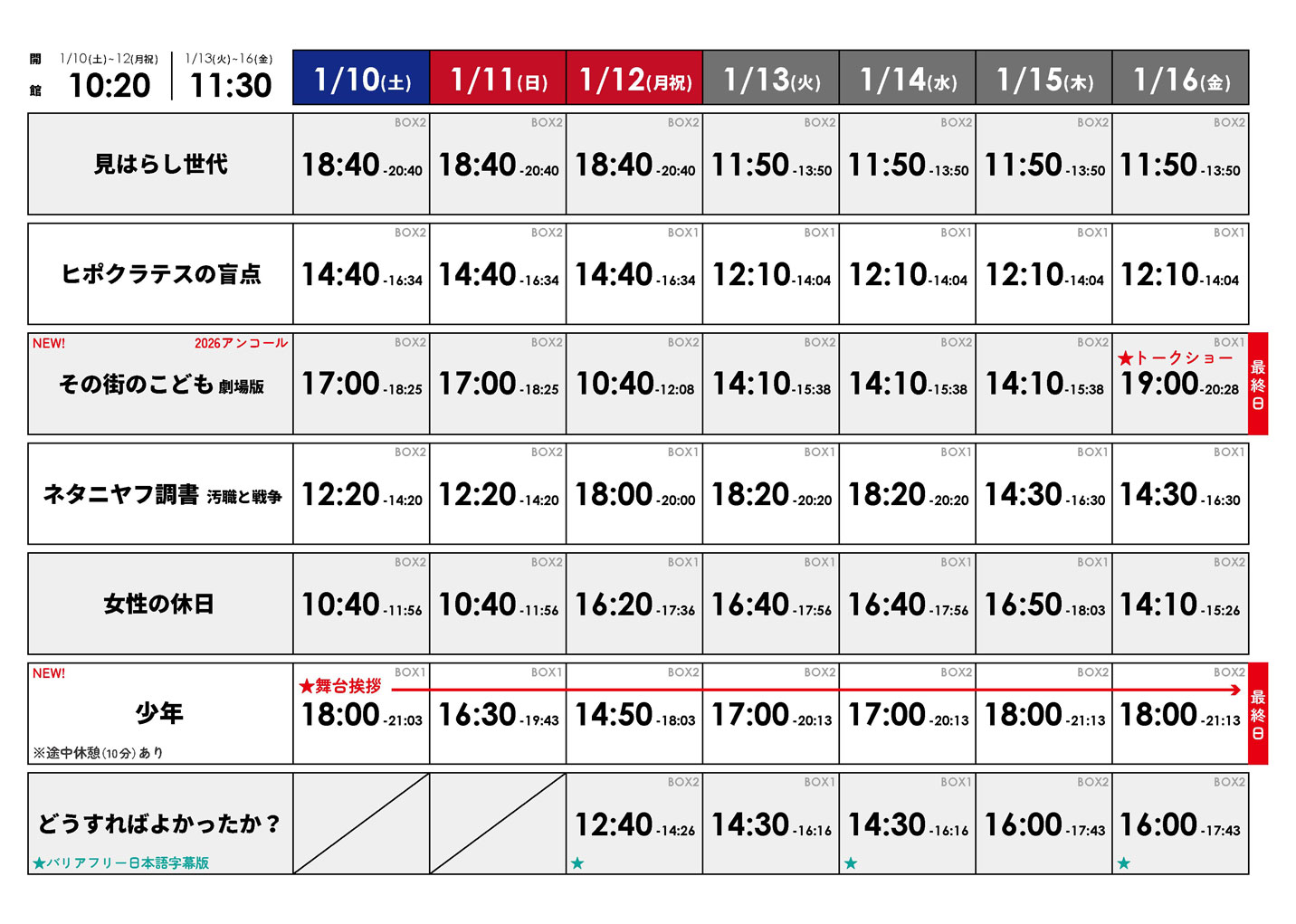 ★1/10(土)~1/16(金)の上映スケジュール表はこちら