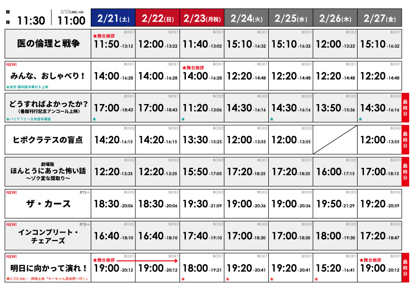 ★2/14(土)~2/20(金)の上映スケジュール表はこちら