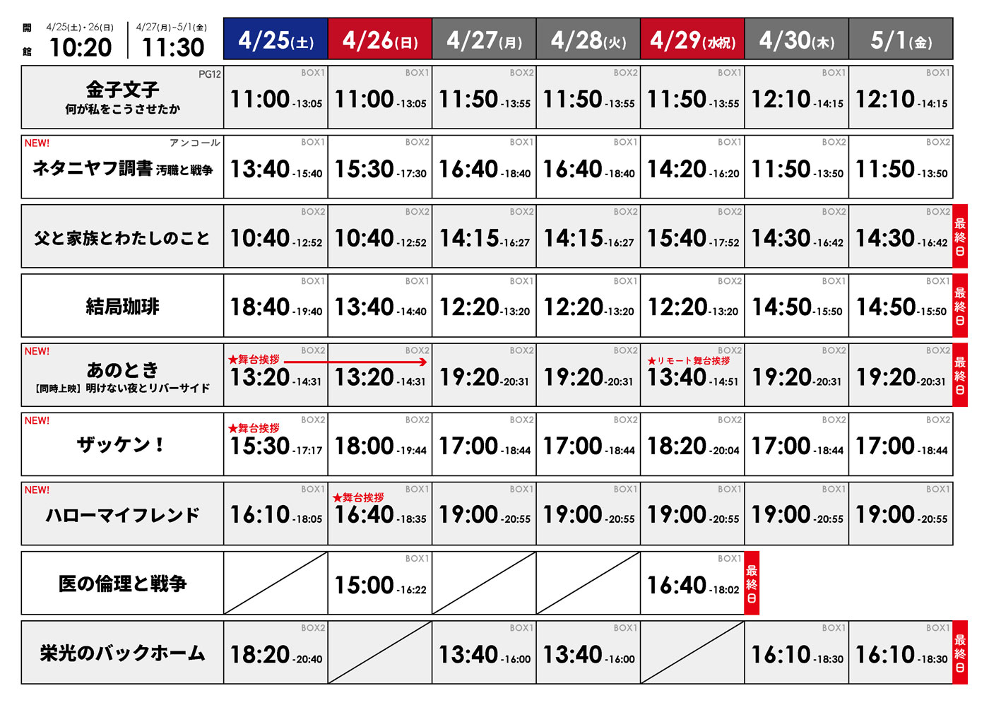 ★4/25(土)~5/1(金)の上映スケジュール表はこちら