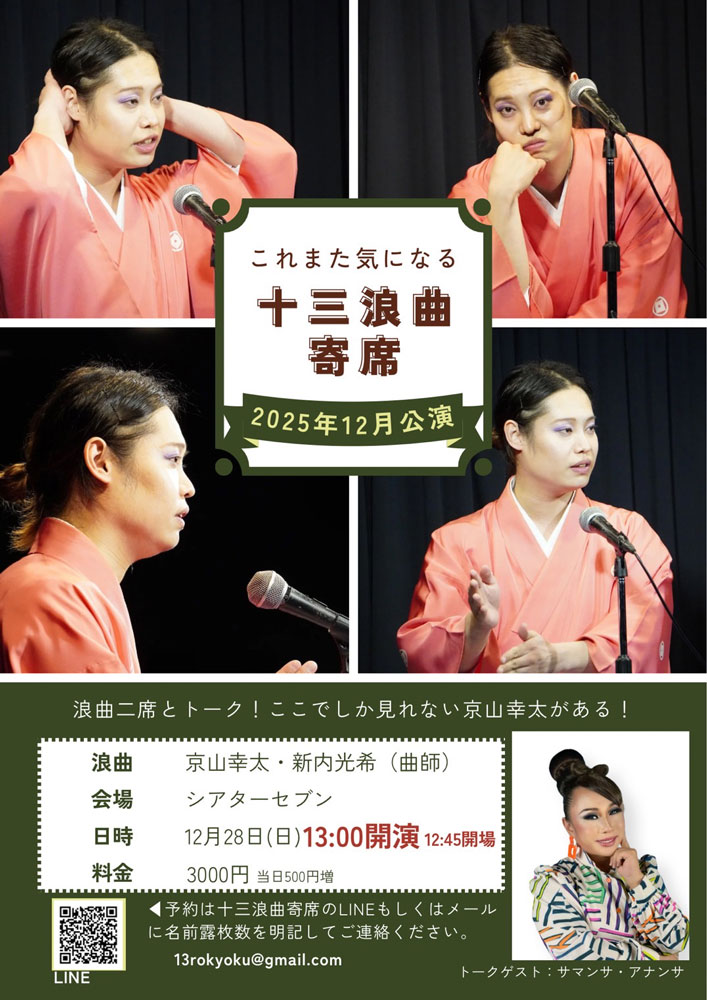 LINE:https://lin.ee/IqbWfII(十三浪曲寄席事務局LINE)